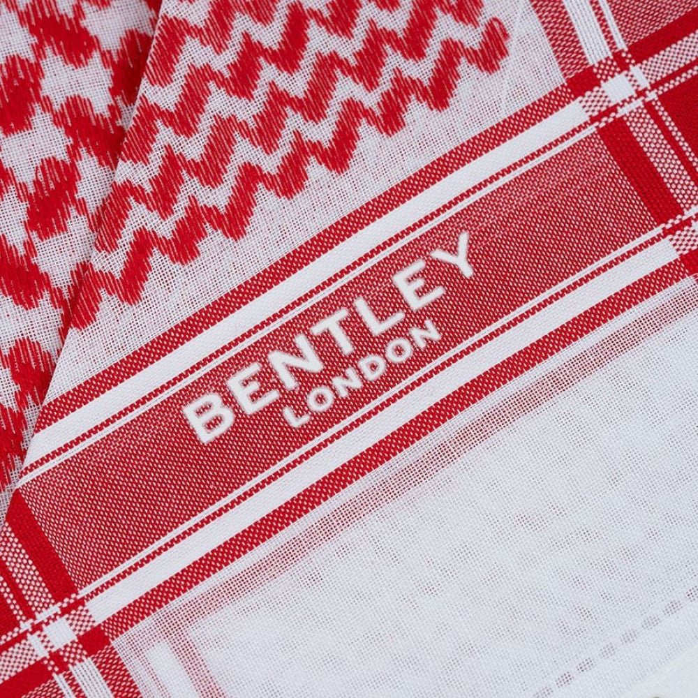 * الاسم مكتوب بتباين و انسجام مع الشماغ باللون الابيض و علامة معدنية مطبوع عليها ماركة BENTLEY.
