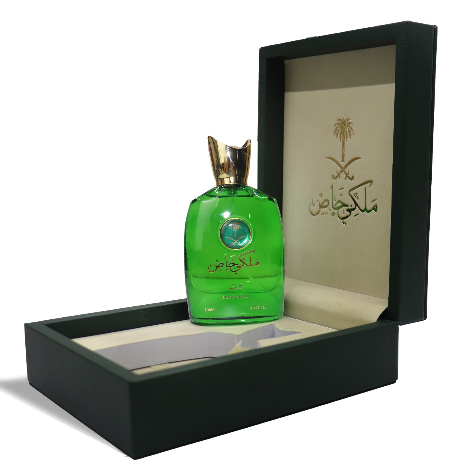 تأتي زجاجة عطر ملكي هيبة بتصميم فاخر يجمع بين الفخامه والرقي. الزجاجة مصنوعة من الكريستال النقي وتزينها لمسات ذهبية مع شعار المملكة سيفين ونخله تضفي عليها طابعًا ملكيًا بامتياز. إنها ليست مجرد عطر، بل قطعة فنية تزين خزانتك.